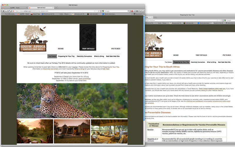 Fantasy Trip 2012 South Africa internal website. Offers a prievew and uptodate information on the trip.
