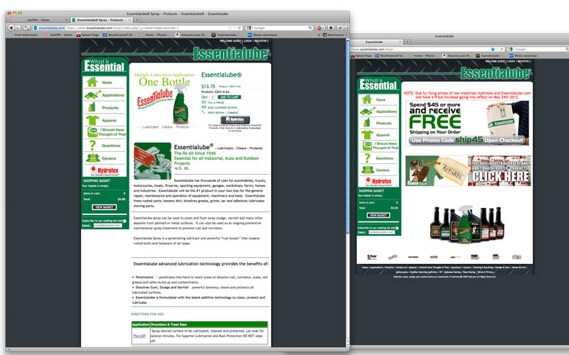 Essentialube.com ecommerce site. Buit to offer some of Hydrotex's comerical packaged products to the non industrial consumer.